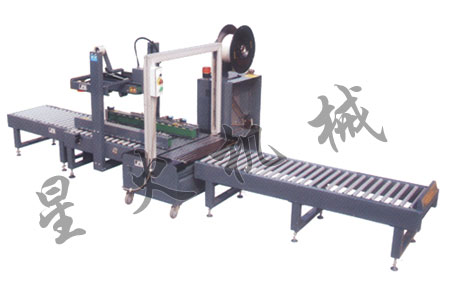 XFK-1D低臺自動封箱捆扎生產(chǎn)線由一臺FXJ-5050LD半自動封箱機(jī),一臺KZD-G8080低臺自動捆扎機(jī)及一臺SJGD-100/66無動力輥筒輸送機(jī)組成。