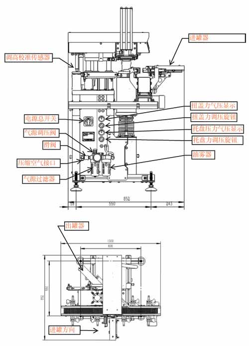 進(jìn)罐機(jī)臺高度:進(jìn)罐平面高度較低830 毫米。